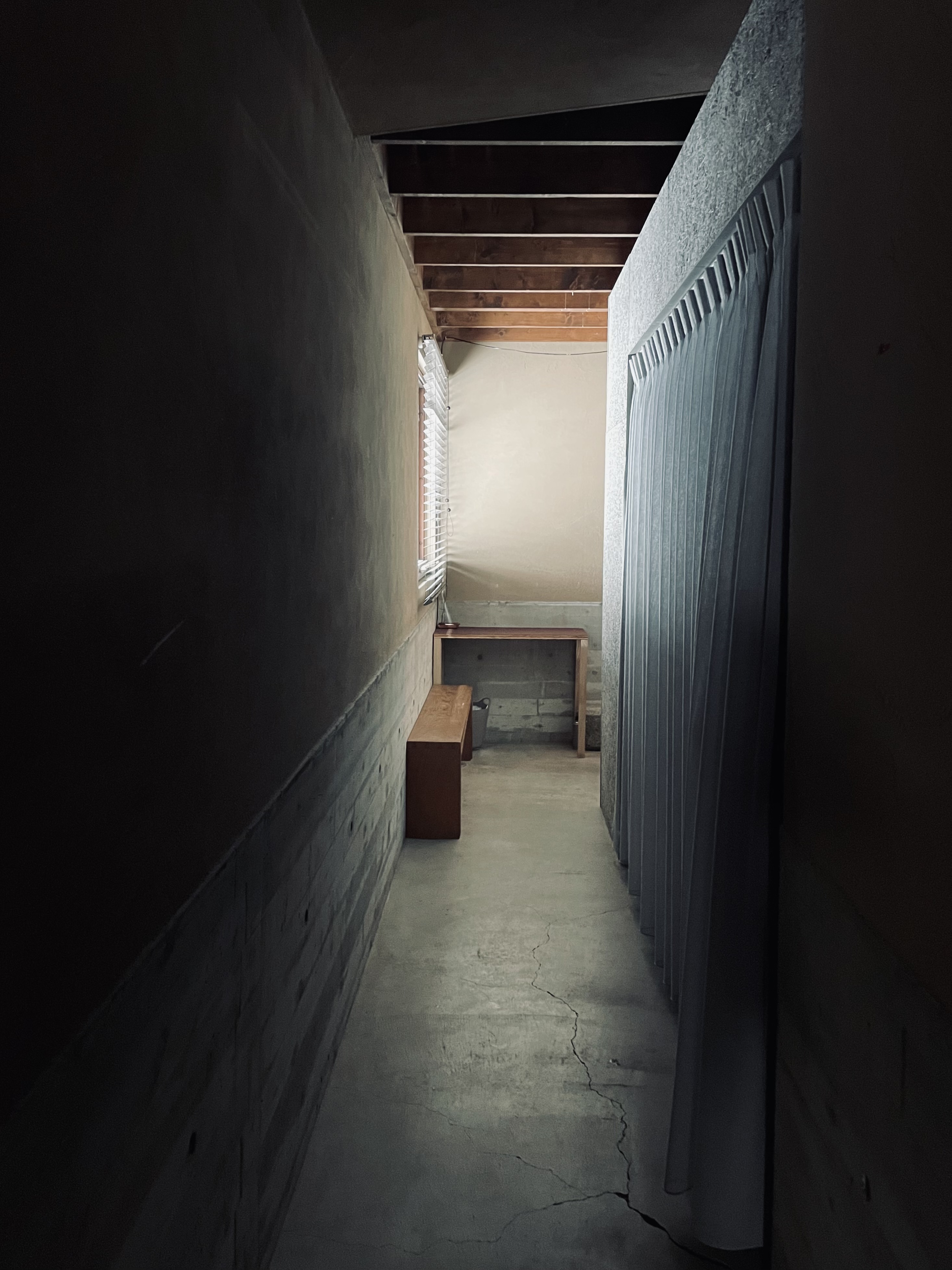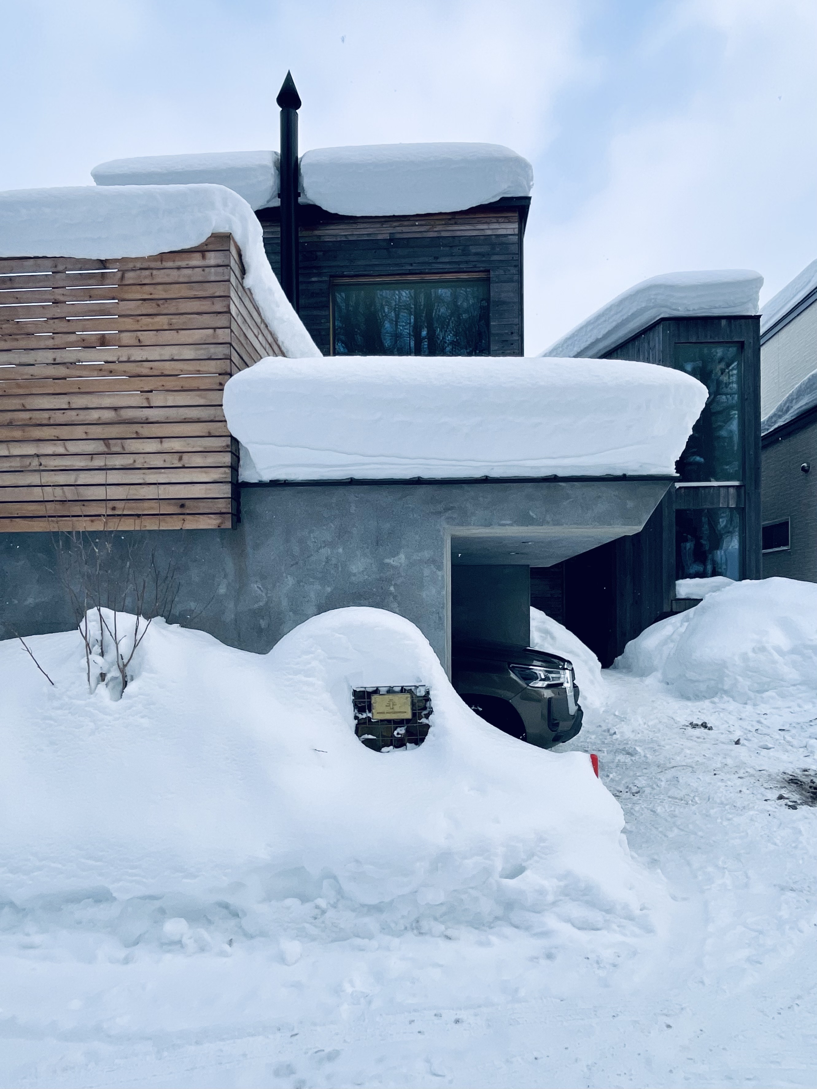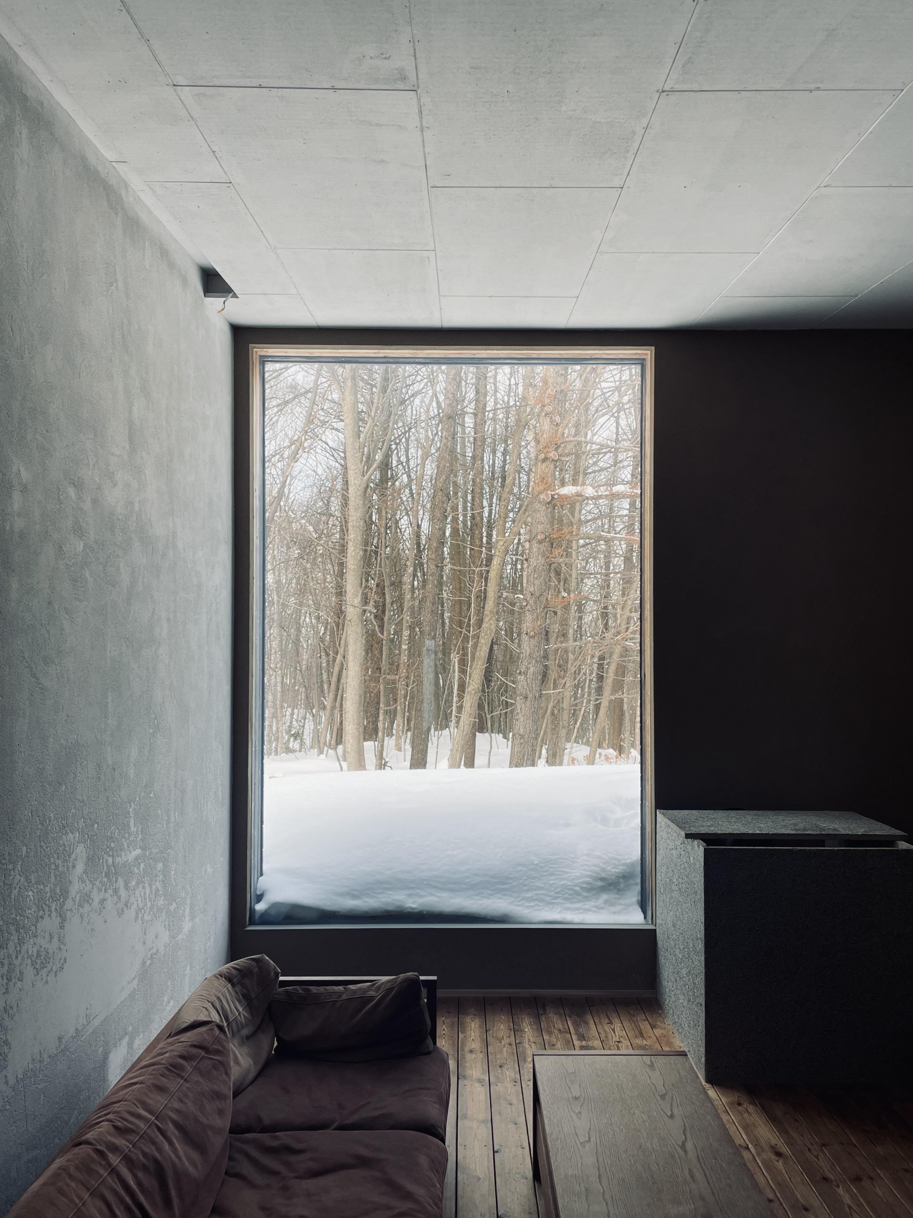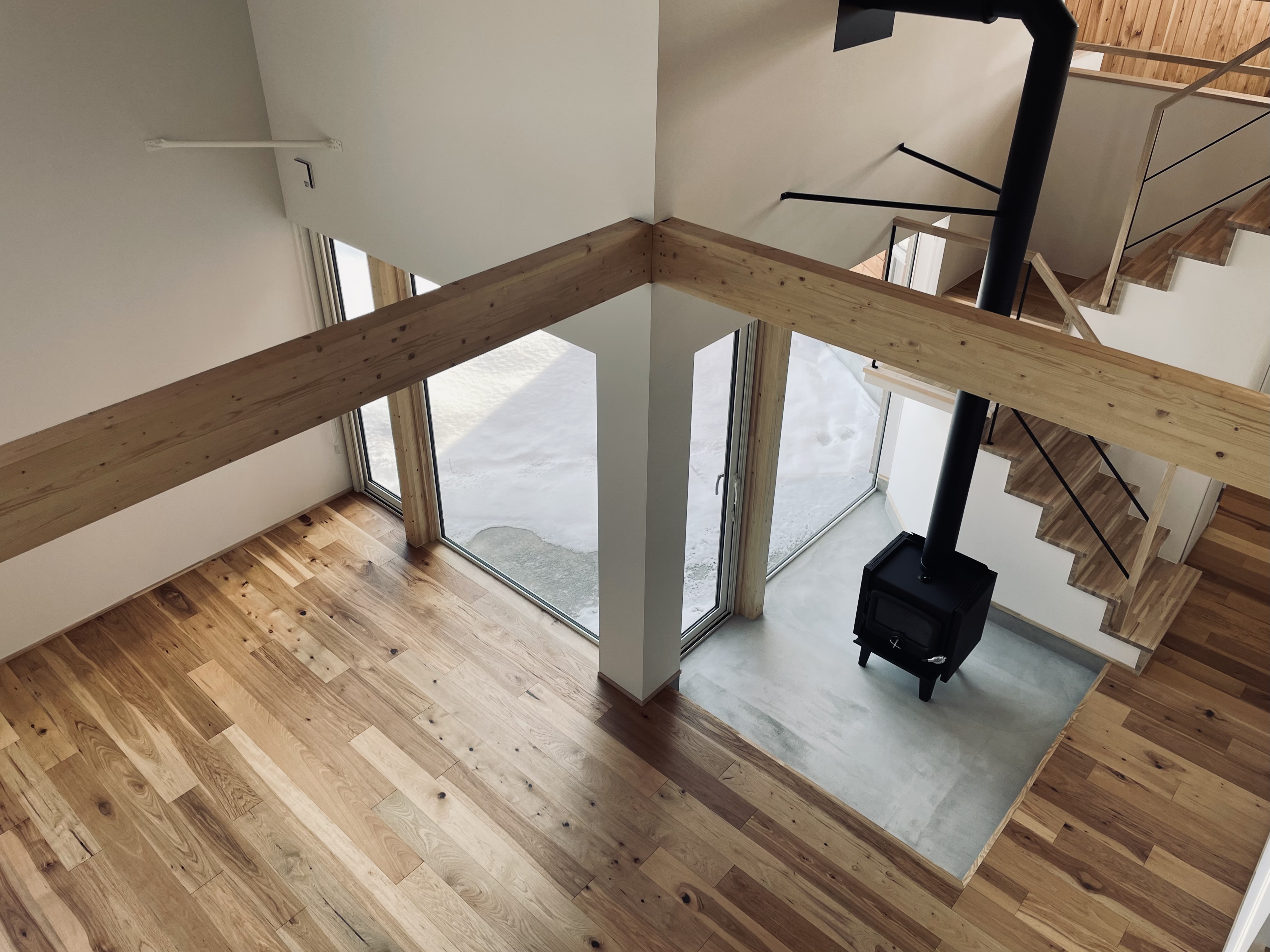 唐松の家は竣工時からリフォームをくりかえしています。2013年の竣工時は、大きなラウンジ空間に大きな窓から望める唐松の木を眺めながら薪ストーブを楽しんでいました。2026年現在は、大きなラウンジは、アウトドアグッズや工具など収納する「ストレージ」と2畳の薪ストーブスペース 私の「秘密基地」に変わっています。薪ストーブスペースは秘密基地となり、一人でゆっくりできるスペースに変わりました。狭い空間で炎を身近に感じ、一人で静かに過ごすには最高です。