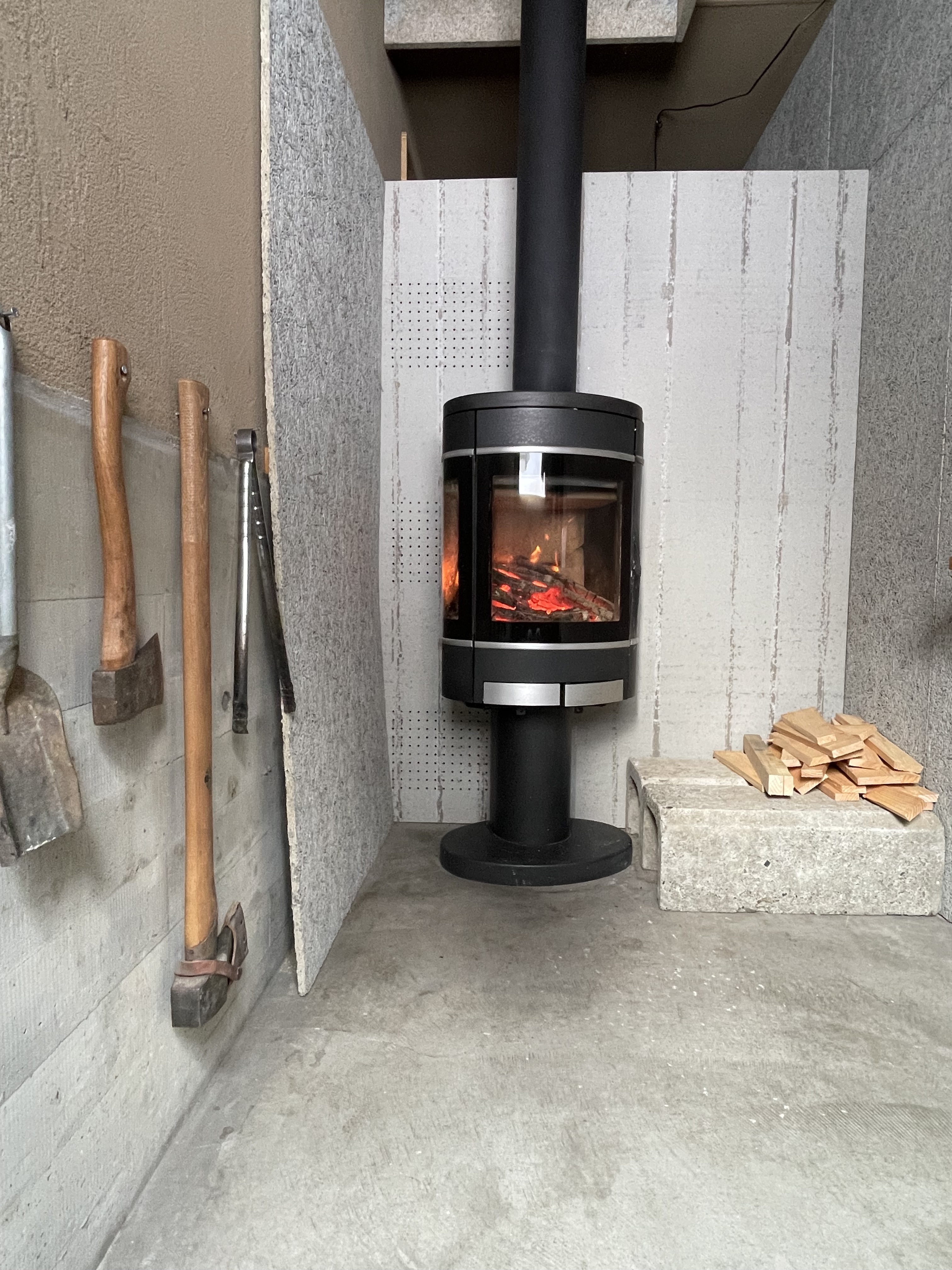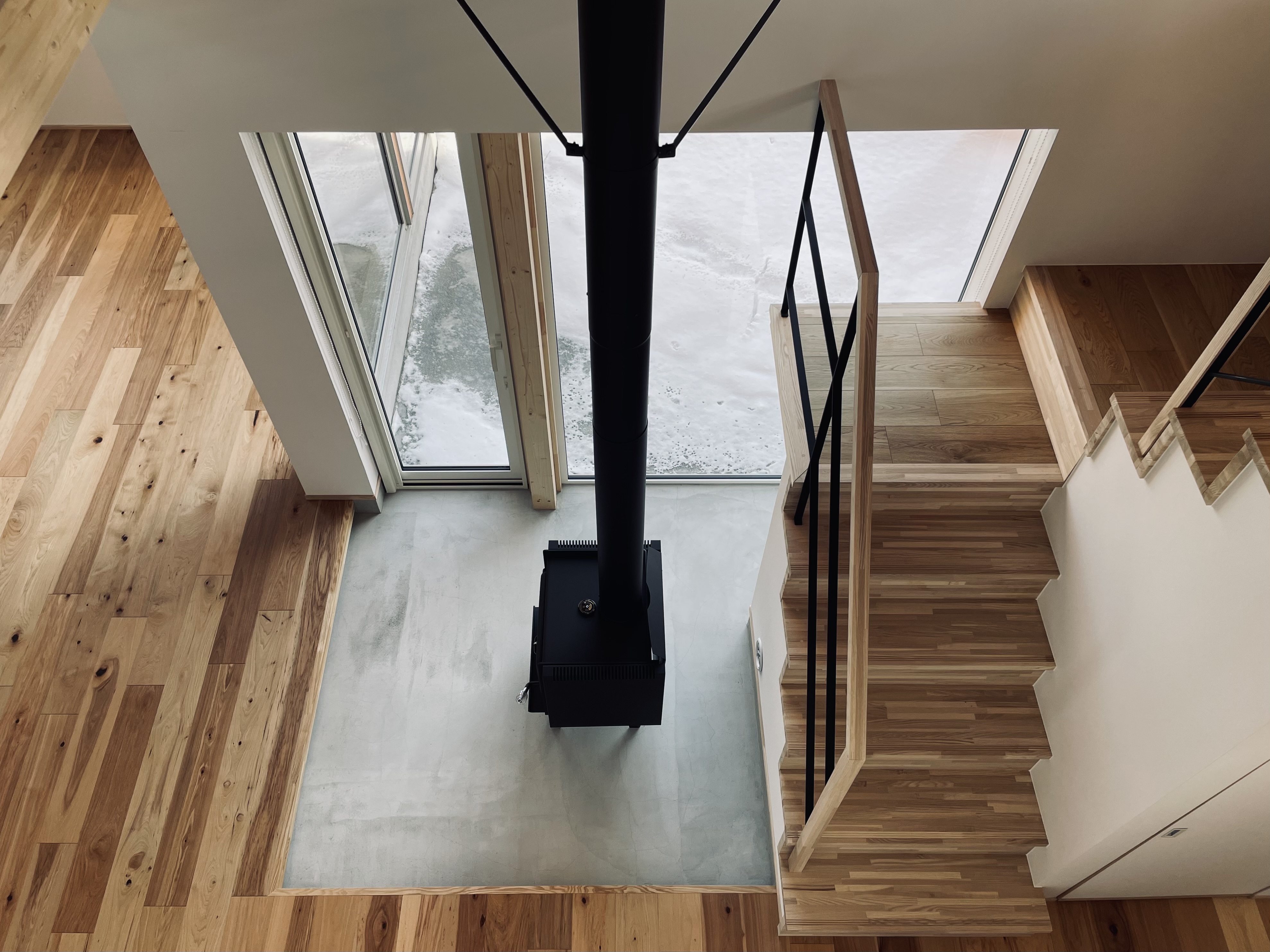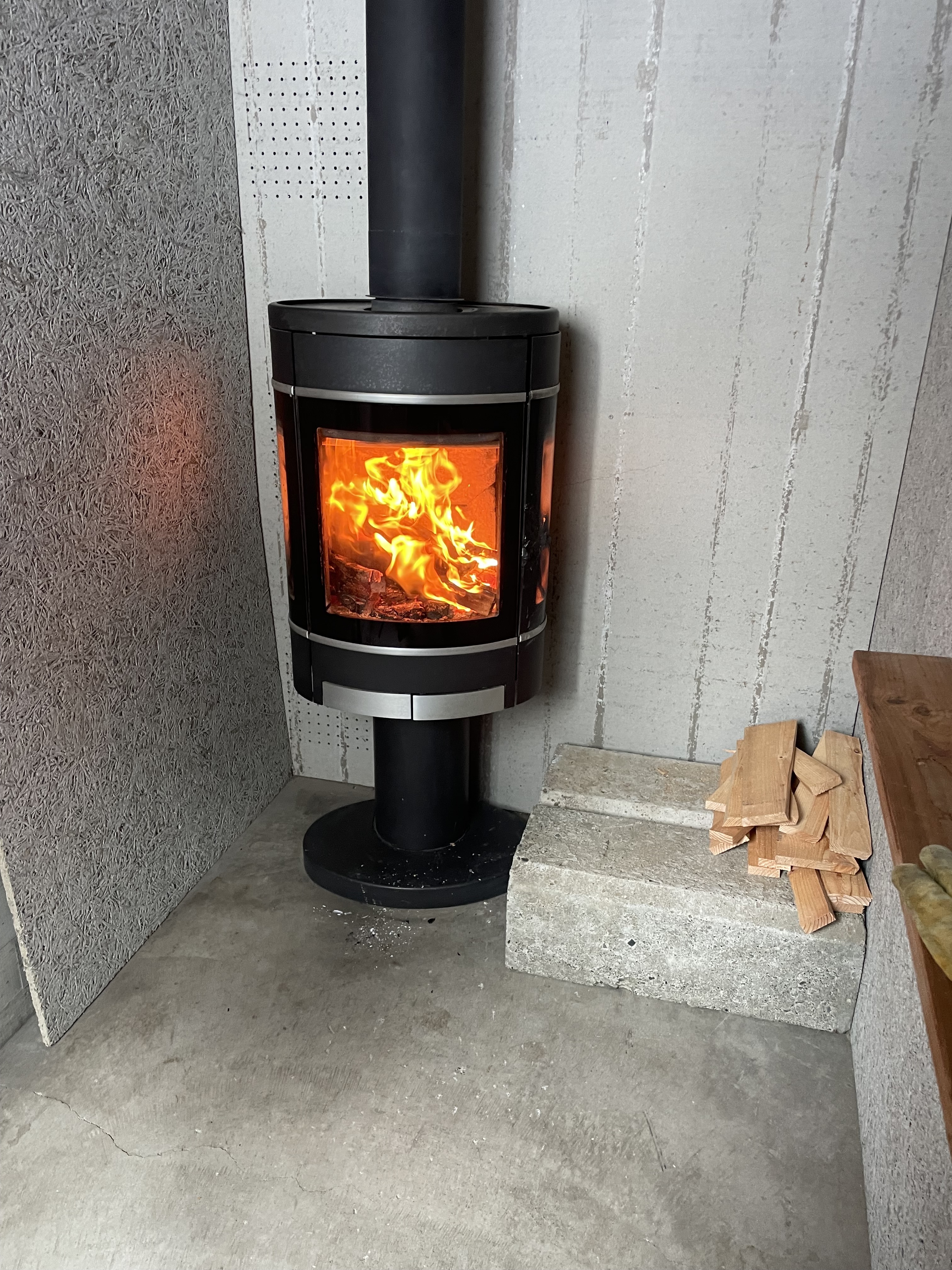 セントラルヒーティングと薪ストーブを併用していますがセントラルヒーティングは、最小限の時間で暖房し、少し寒いと感じた時に薪ストーブを利用して家をあたためます。セントラルヒーティングで家を暖め過ぎない事も無理なく薪ストーブを楽しむ工夫の一つです。薪ストーブを使用する時間は18時〜21時です。私の仕事が終わる時間に合わせて薪ストーブを稼働させます。
